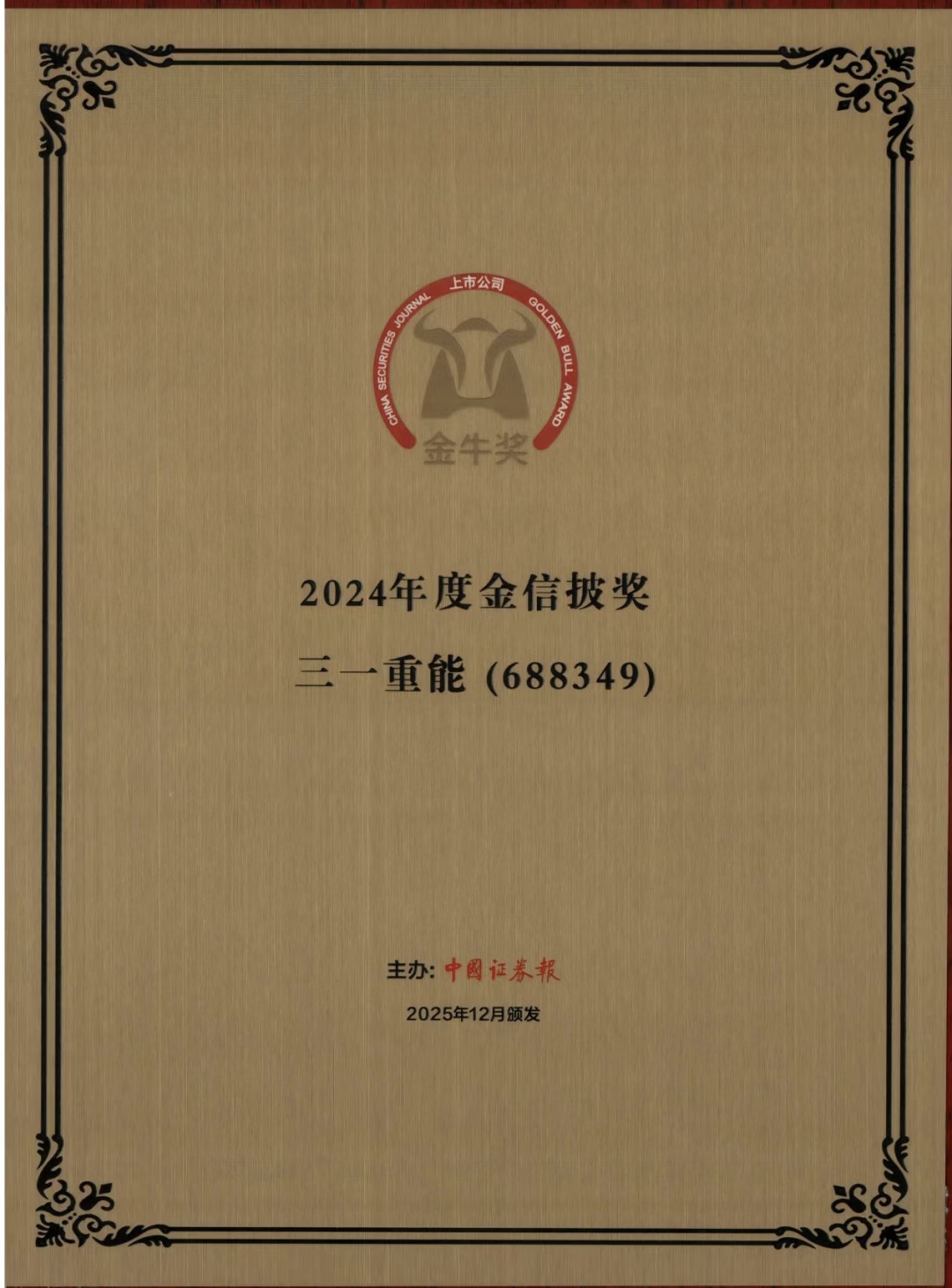 近日,由中国证券报主办的2025科创投资大会暨上市公司金牛奖(金信披奖)颁奖典礼在安徽举行,三一重能凭借在信息披露和投资者关系管理等方面的卓越表现,获得本届金牛奖“金信披奖”。此前,在中国证券报与南通市人民政府联合主办的2025上市公司高质量发展论坛上,公司董事会秘书周利凯先生获得“金牛董秘奖”。