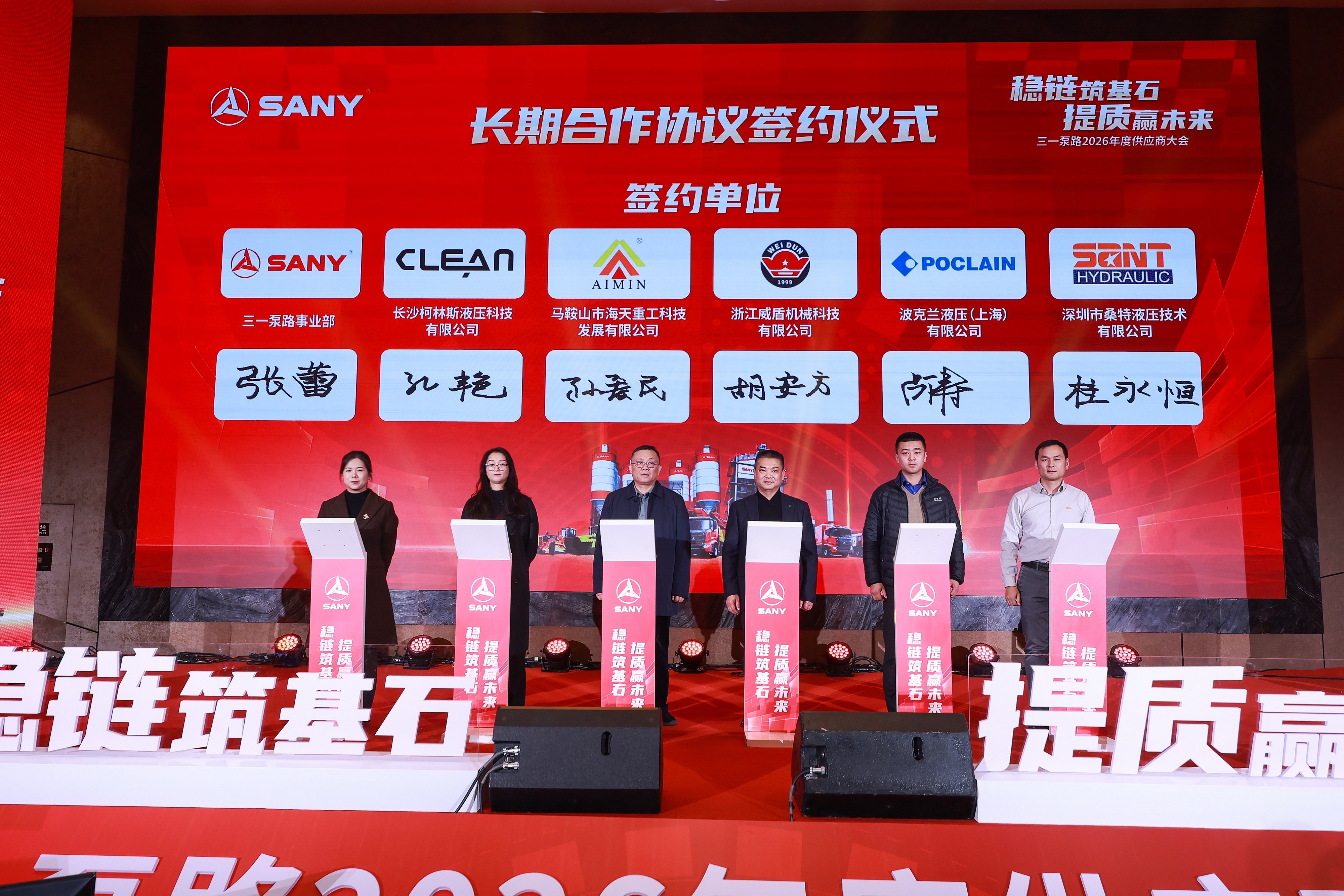 12月26日,三一泵路事业部以“稳链筑基石,提质赢未来”为主题,成功举办了2026年度供应商大会。来自全球的160家核心供应商代表齐聚三一,共同回顾过去一年的合作成果,探讨新一年的发展规划,旨在深化战略协同,夯实供应链基础,携手提升综合竞争力。