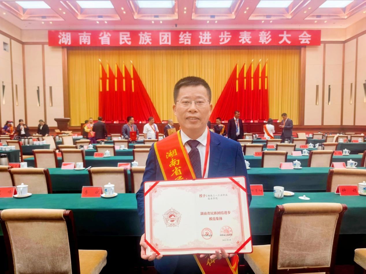 10月15日,湖南省民族团结进步表彰大会隆重举行,对在全省民族团结进步事业中作出突出贡献的模范集体和个人进行表彰。省委书记沈晓明亲自颁奖并作讲话,省长毛伟明主持表彰大会。三一职院凭借在促进民族团结、构建和谐校园、推进民族地区共同现代化等方面的卓越工作,被授予“湖南省民族团结进步模范集体”荣誉称号。
