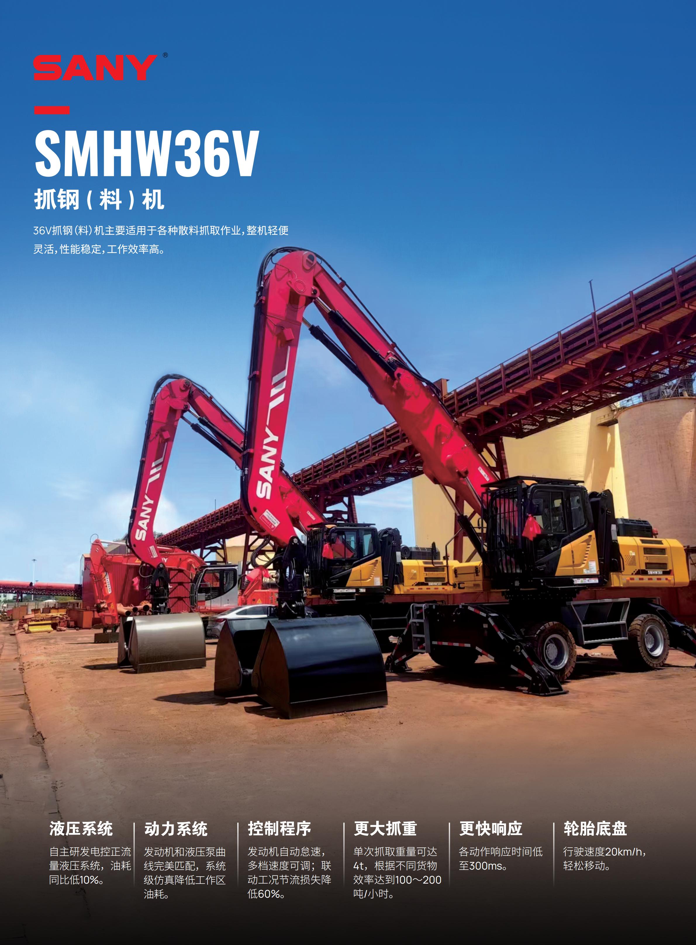 三一自主研发生产的抓钢(料)机,拥有多项自主研发的核心专利技术,涵盖节能控制、液压联动、防倾翻保护、故障自动检测与数据实时显示等多个维度;